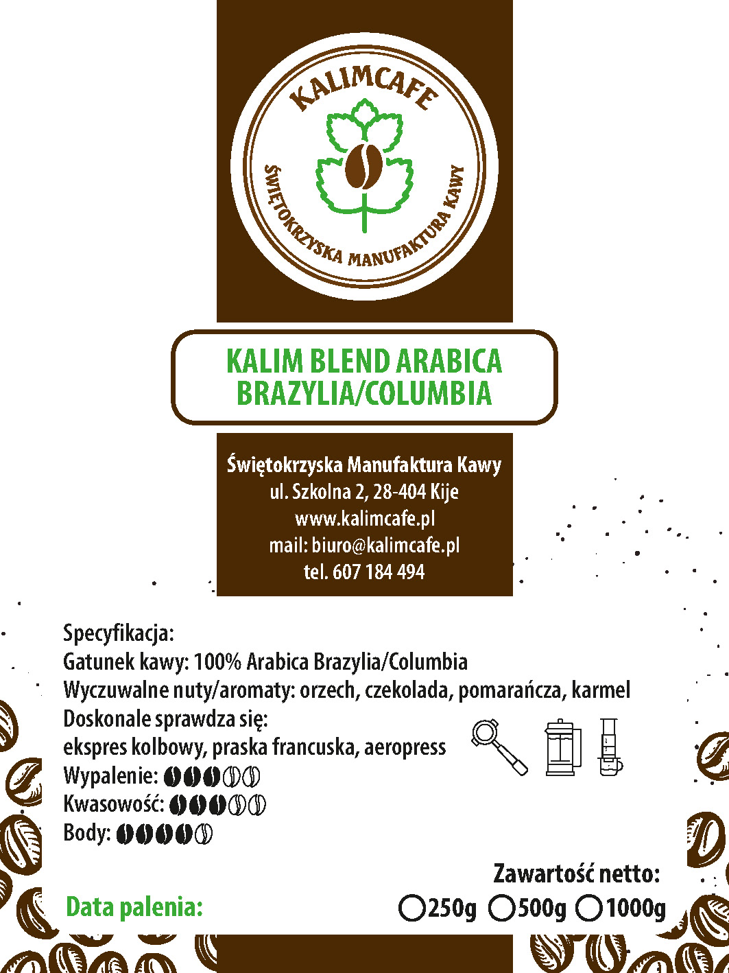 Gatunek kawy: 100% Arabica – Brazylia/Kolumbia