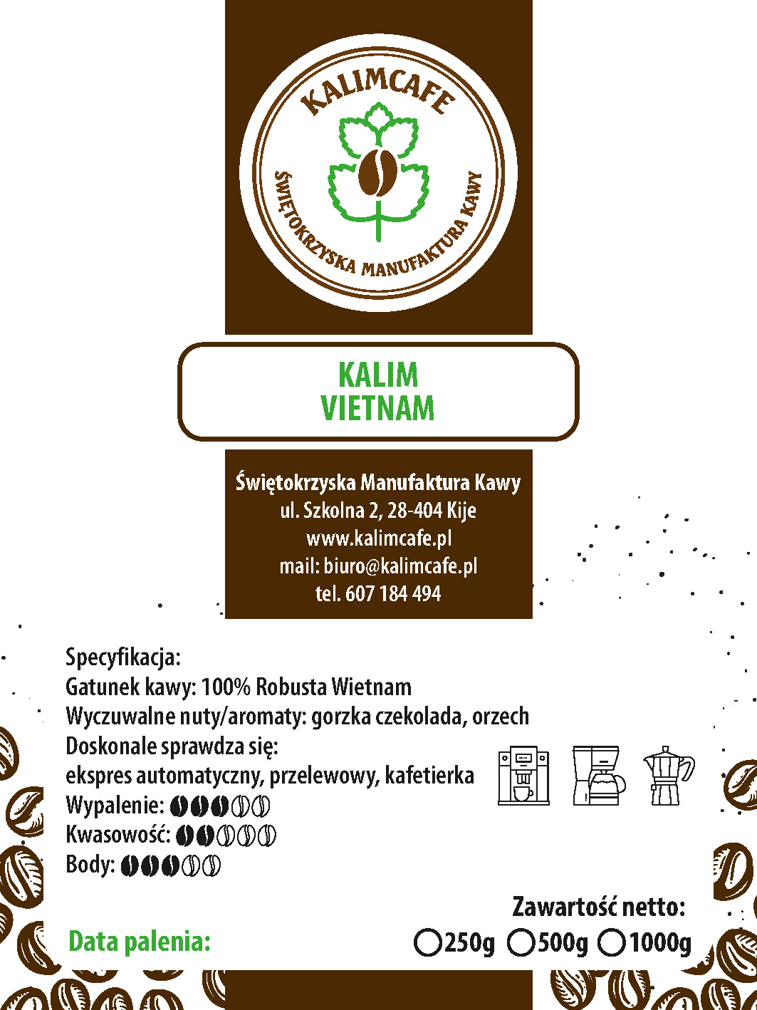 Gatunek kawy: 100% Robusta Vietnam