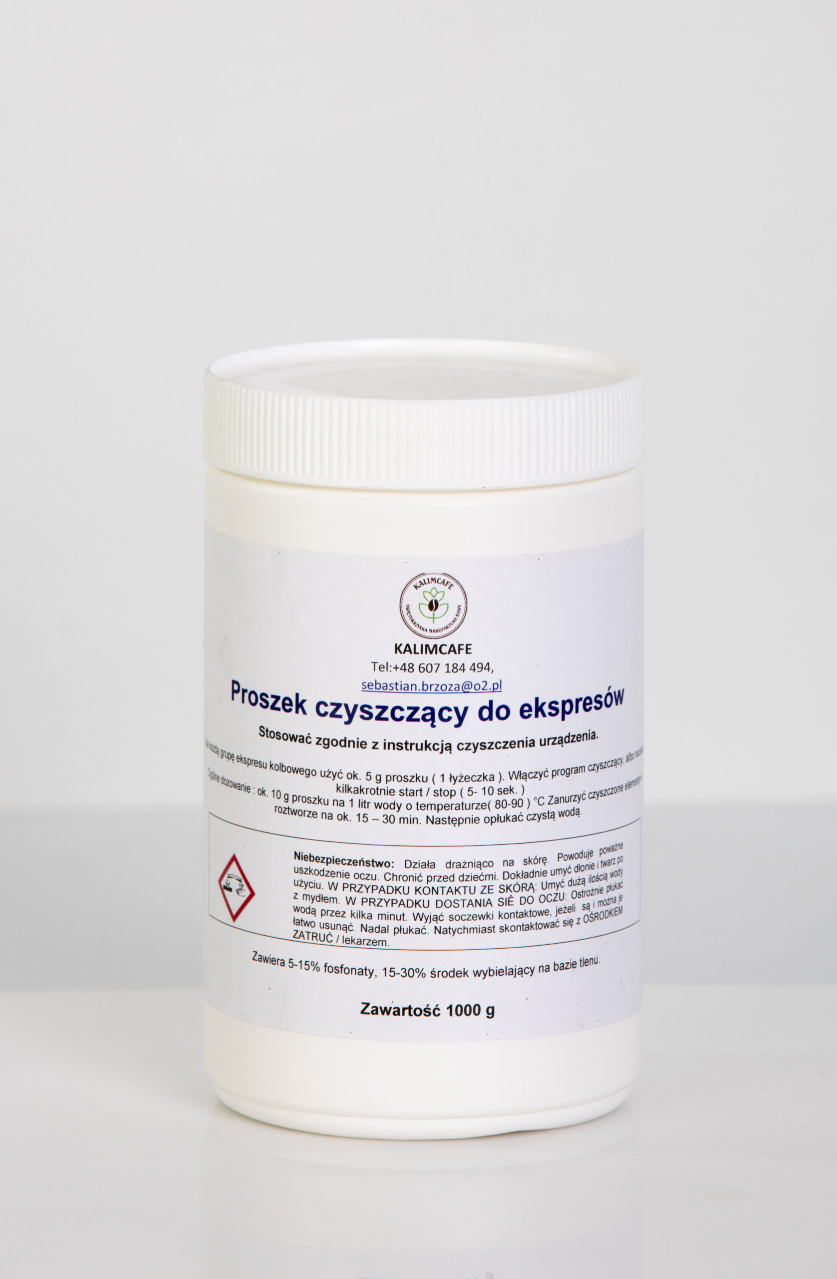 Odkamieniacz w proszku do ekspresów kolbowych to specjalnie opracowany produkt do usuwania kamienia i osadów mineralnych z wnętrza ekspresów kolbowych. W skład tego proszku5-15% fosforany , 15-30% środek wybielajaćy na bazie tlemu , który skutecznie rozpuszczają i usuwają nagromadzone zanieczyszczenia. Proszek ten jest łatwy w użyciu i zazwyczaj 3 gramy wsypać do łyżki i przepuścić przez układ ekspresu, aby oczyścić jego wnętrze. Regularne stosowanie odkamieniacza w proszku może zapobiegać powstawaniu zanieczyszczeń w ekspresie, co pozwala zachować jego wydajność i przedłużyć jego żywotność. Ważne jest, aby korzystać z odpowiedniej ilości proszku i przestrzegać zaleceń producenta, aby uniknąć uszkodzenia urządzenia. Po użyciu odkamieniacza zaleca się dokładne płukanie i przepuszczanie przez ekspres czystej wody, aby usunąć wszelkie pozostałości produktu.